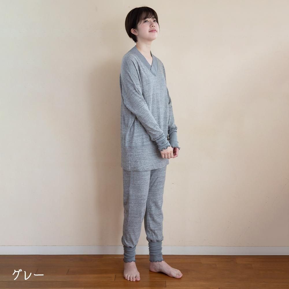 上下セットでお得♪ シルクリブウォーマー付きトップス&スウェットパンツセット(シルクコットン製)