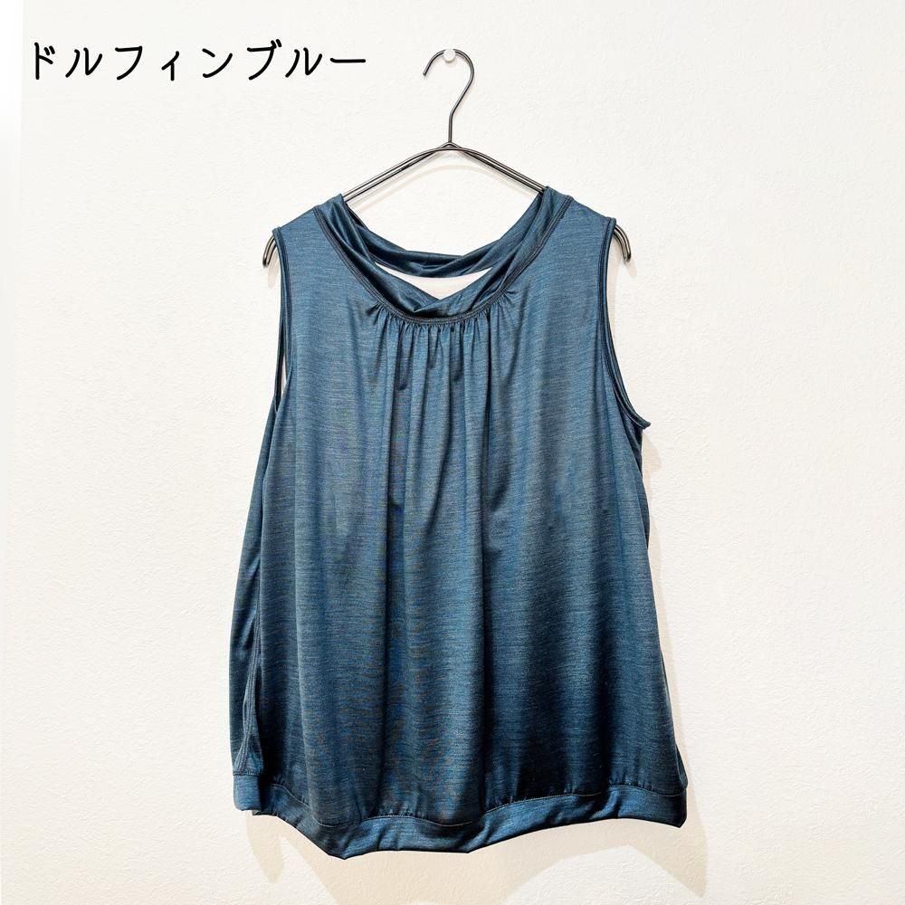 【生地傷あり】シルクノースリーブ ツイスト襟カップ付(絹100%)ドルフィンブルーL